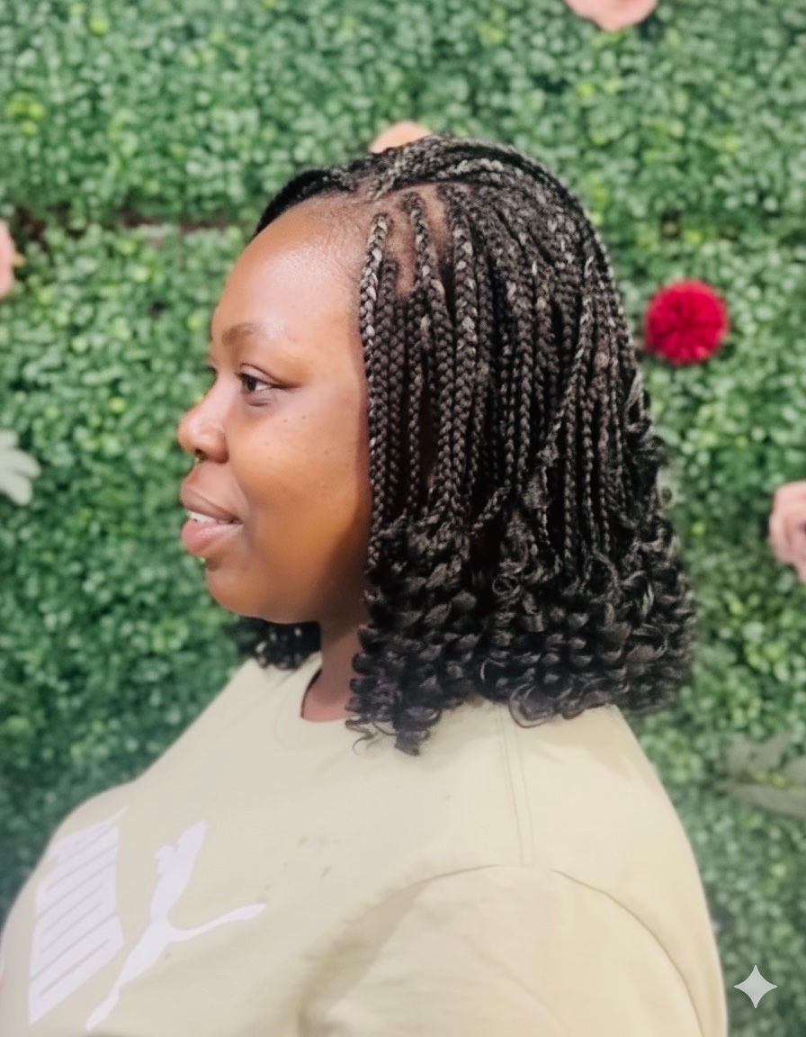 For all Boho knotless braids, the curly human hair is not included in the service, the clients have to provide their own curly hair or buy it at the shop, thanks!